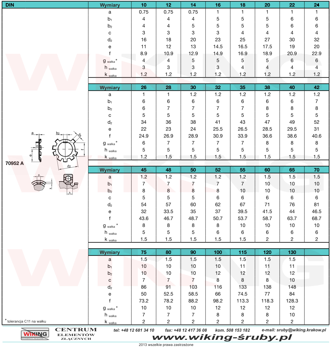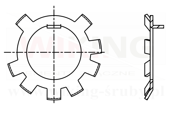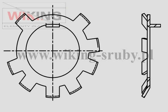 Podkładki zabezpieczające DIN 70952 zostały zaprojektowane z myślą o zabezpieczaniu nakrętki rowkowej DIN 70852 przed odkręceniem jej podczas pracy na wałku lub wrzecionie. Nakrętki charakteryzują się wystającymi ząbkami o nieregularnych odstępach na zewnętrznej krawędzi, których – po prawidłowym montażu – jest zablokowanie nakrętki przed obróceniem się, zmniejszając tym ryzyko samoczynnego odkręcenia się w trakcie eksploatacji. Dodatkowo, podkładka posiada jeden ząbek odgięty pod kątem 90°, którego zadaniem jest ustalenie podkładki nieruchomo na wale. Zalecana tolerancja otworu na wale to C11.