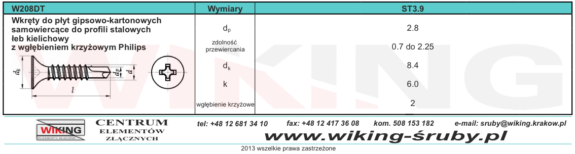 | blachowkrętowy | stal | fosfatowane | ST3,9 | 25 | |