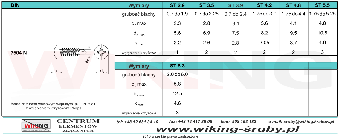 | blachowkrętowy | stal | ocynk galwaniczny | ST6,3 | 100 | z wgłębieniem krzyżowym H (Philips) | ||